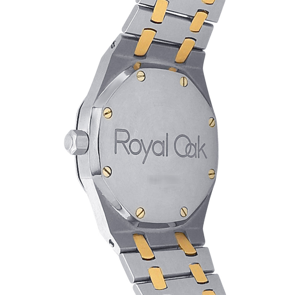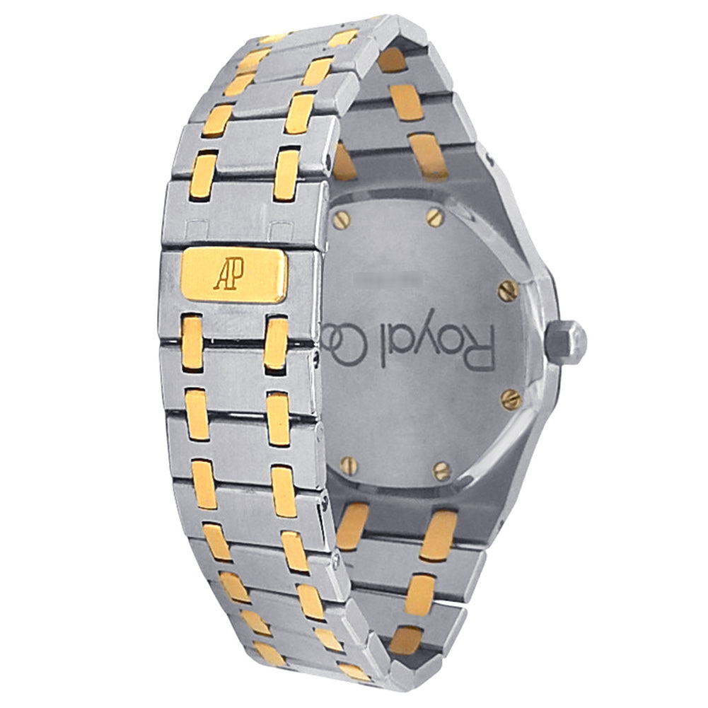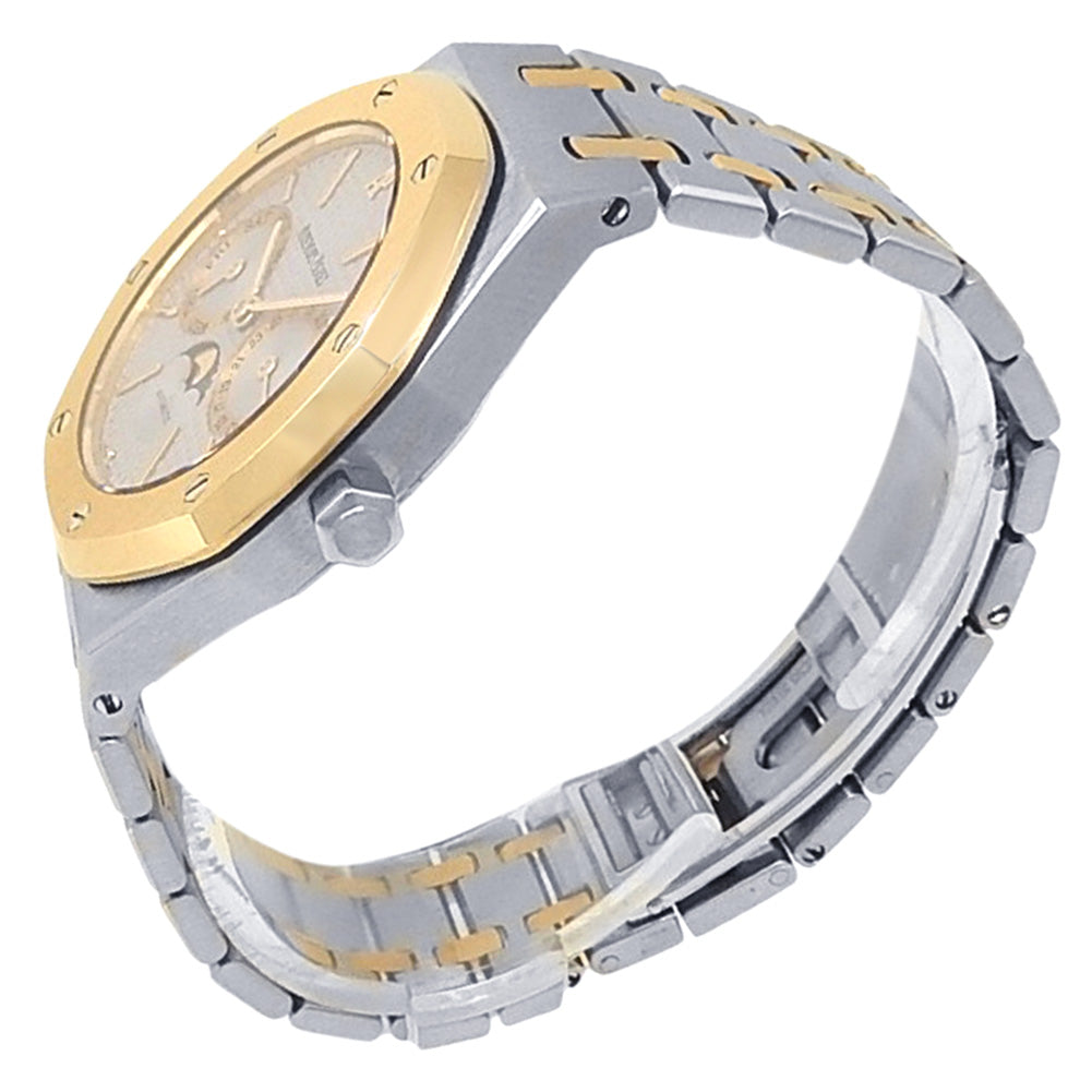 Pre-Owned Watch. Audemars Piguet Royal Oak Day-Date men’s watch with 18k Yellow Gold & Stainless Steel case and bracelet. Watch has a grey dial with date, day and moonphase features. Watch runs on automatic movement. Watch can fit up to a size 6½ inch wrist. Watch has signs of wear (hairline scratches).