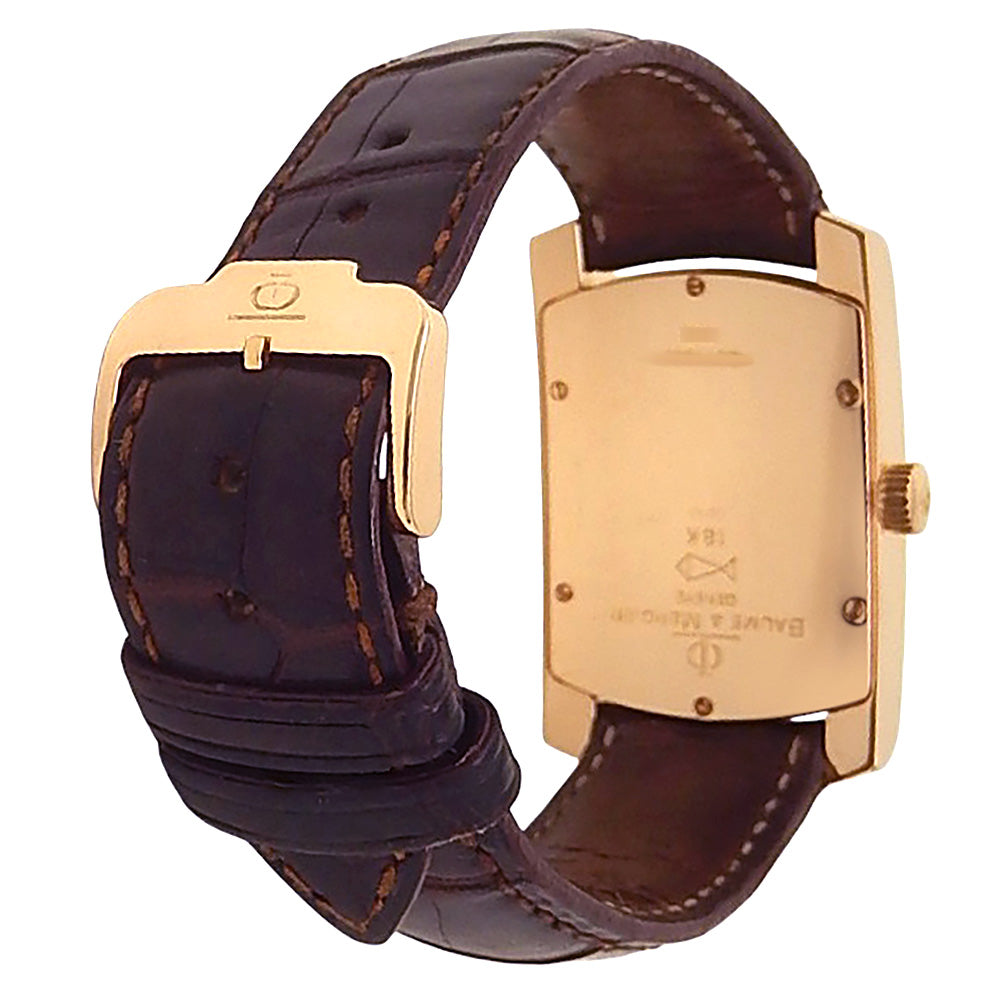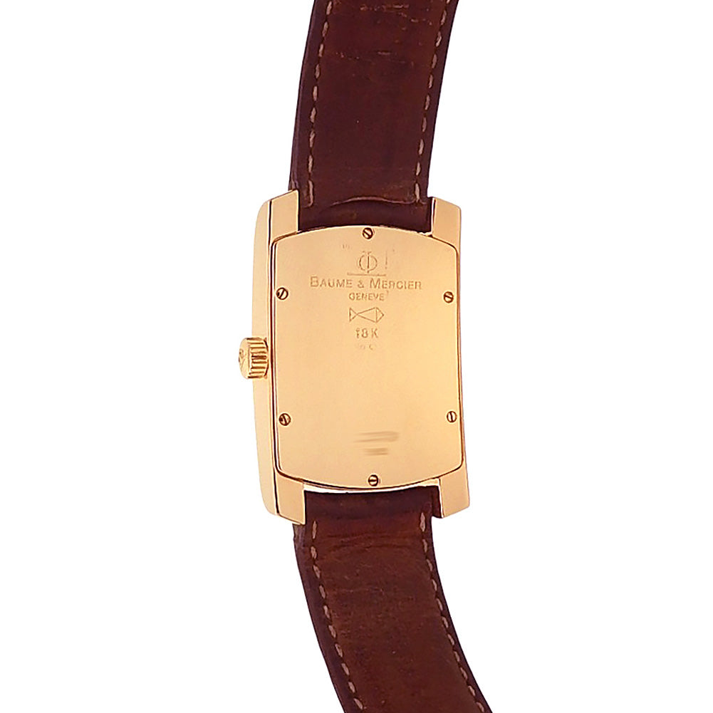 Baume & Mercier Hampton 18k Rose Gold Brown Leather Manual Silver Men's Watch 65362
