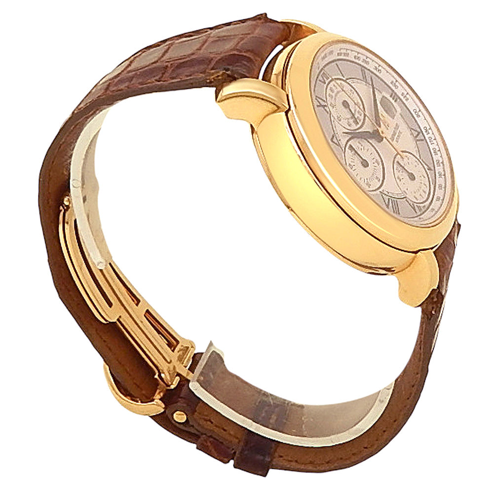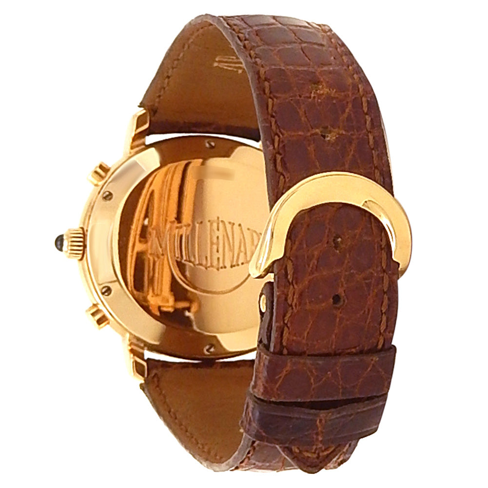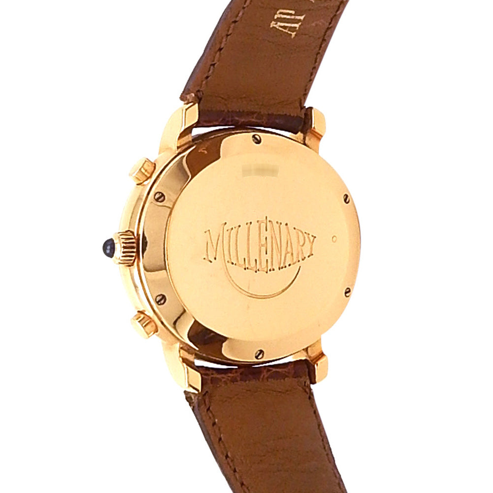Pre-Owned Watch. Audemars Piguet Millenary men's watch with 18k Rose Gold case and Brown Leather strap. Watch has a silver dial with date and chronograph features. Watch runs on automatic movement. Watch has signs of wear (hairline scratches).