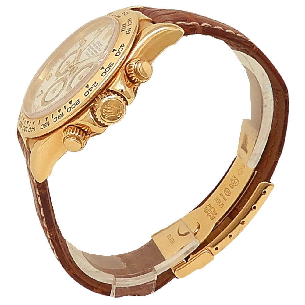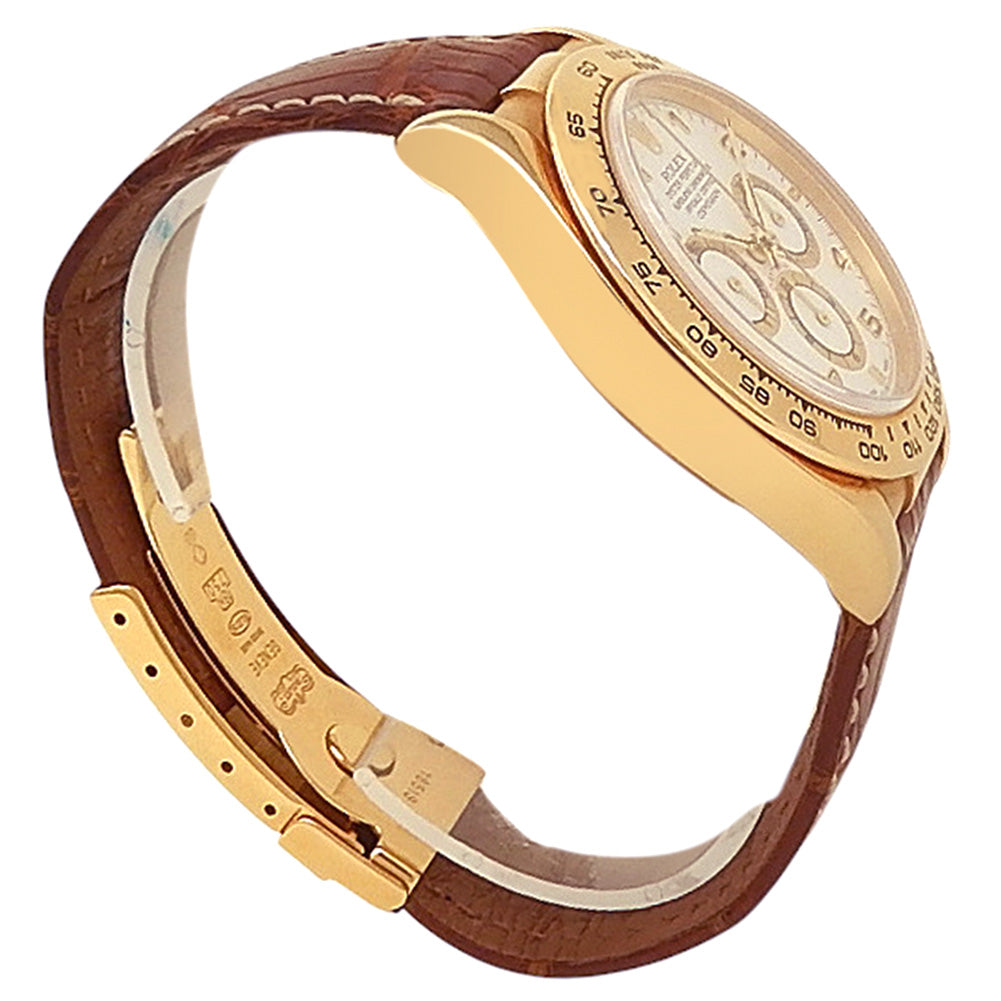 Rolex Daytona 18k Yellow Gold Brown Leather Automatic White Men's Watch 16518