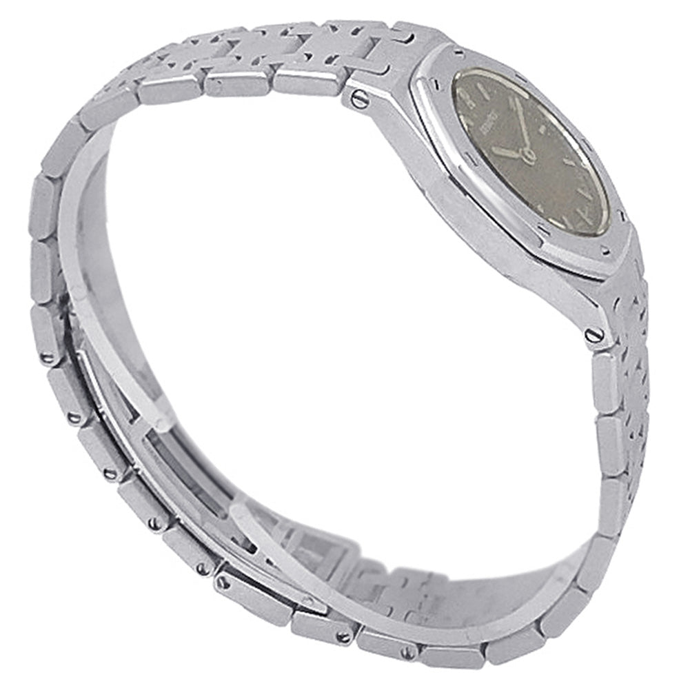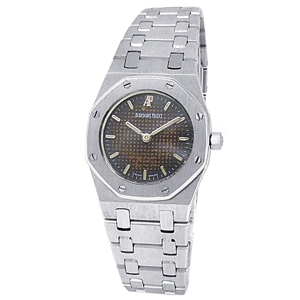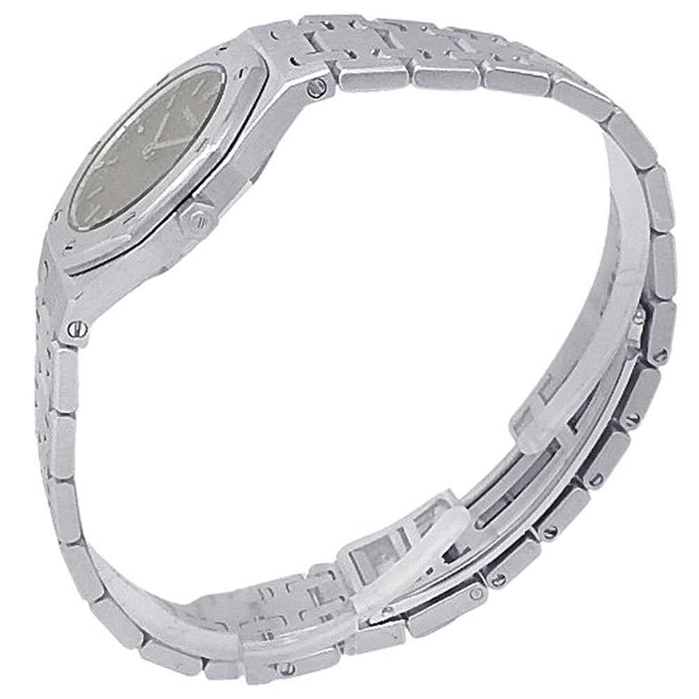 Pre-Owned Watch. Audemars Piguet Royal Oak ladies watch with 18k White Gold case and bracelet. Watch has a grey dial. Watch runs on quartz movement. Watch can fit up to a size 6¼ inch wrist. Watch has signs of wear (hairline scratches).