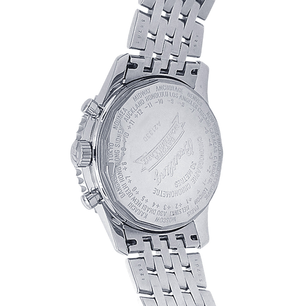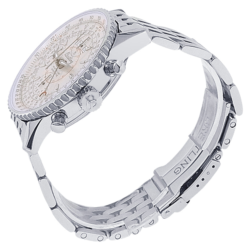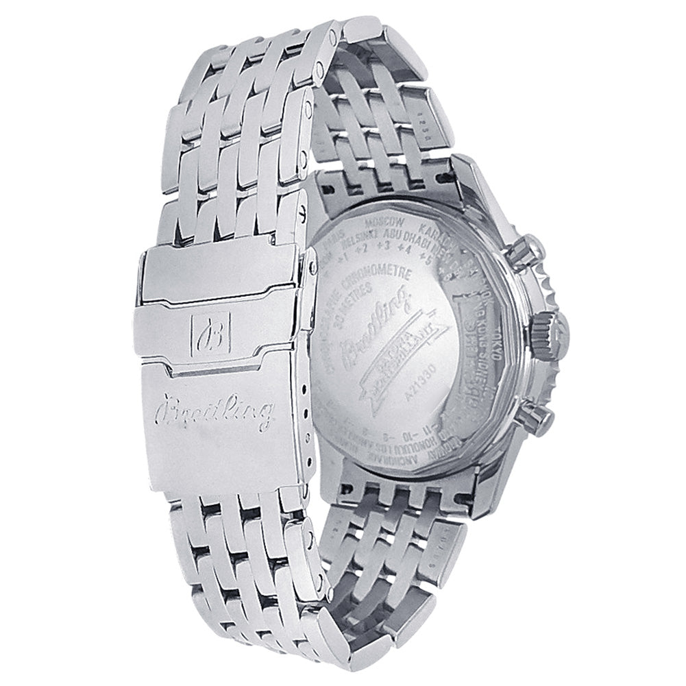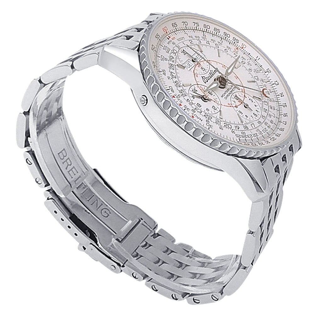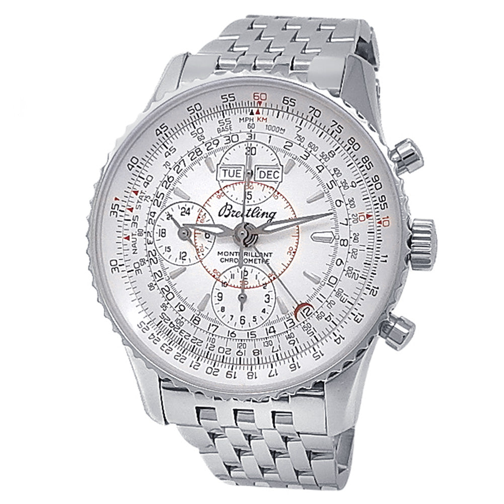 Pre-Owned Watch. Breitling Montbrillant Datora men’s watch with Stainless Steel case and bracelet. Watch has a silver dial with date, day, month and chronograph features. Watch runs on automatic movement. Watch can fit up to a size 7½ inch wrist. Watch has signs of wear (hairline scratches). Watch does come with box and papers.
