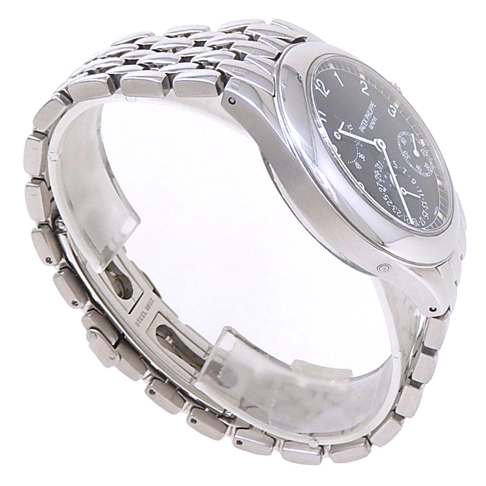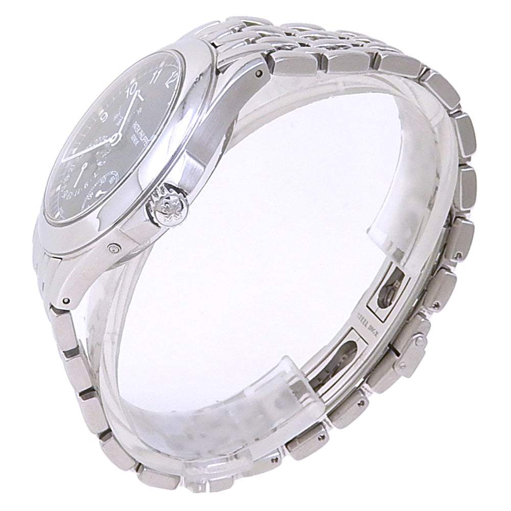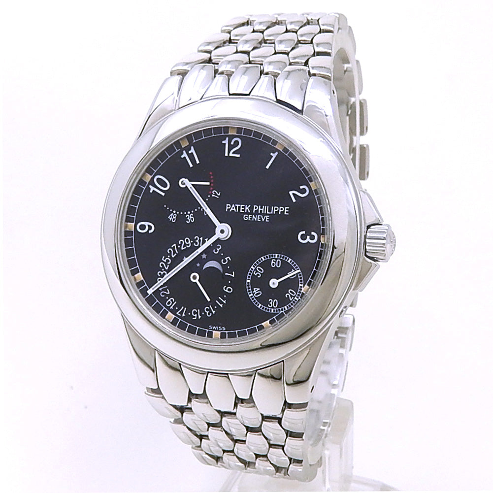 Pre-Owned Watch. Patek Philippe Neptune men’s watch with Stainless Steel case and bracelet. Watch has a black dial with date, moon phase, small seconds subdial with power reserve features. Watch runs on automatic movement. Watch can fit up to a size 7 inch wrist. Watch has signs of wear (hairline scratches).