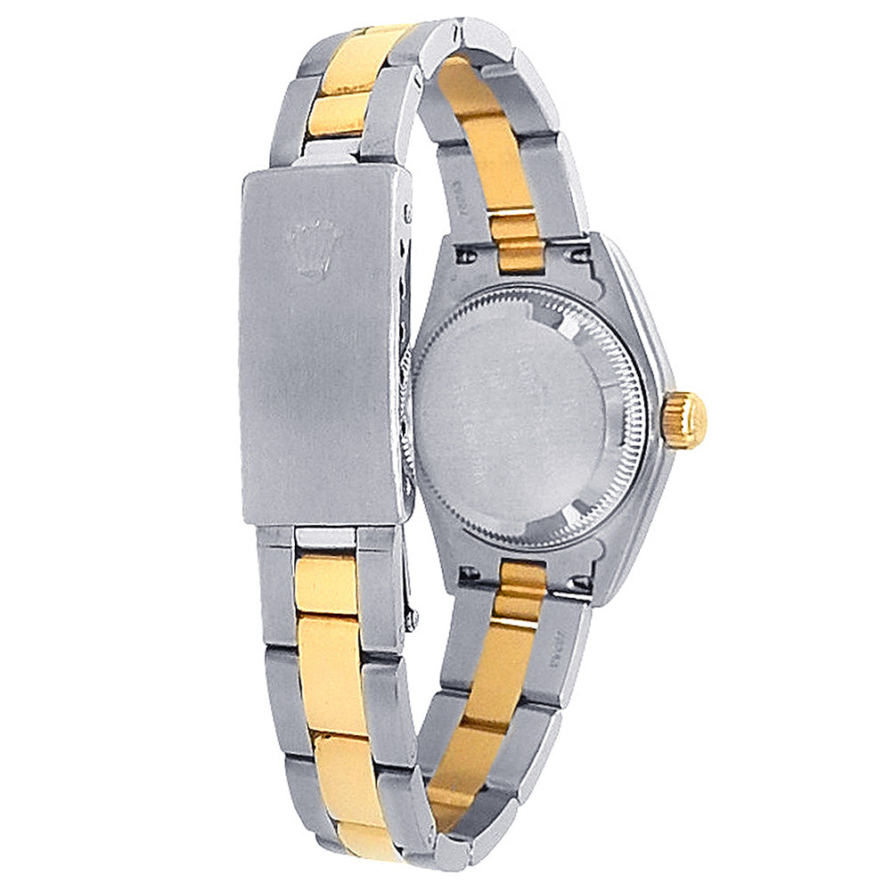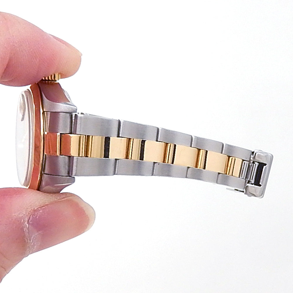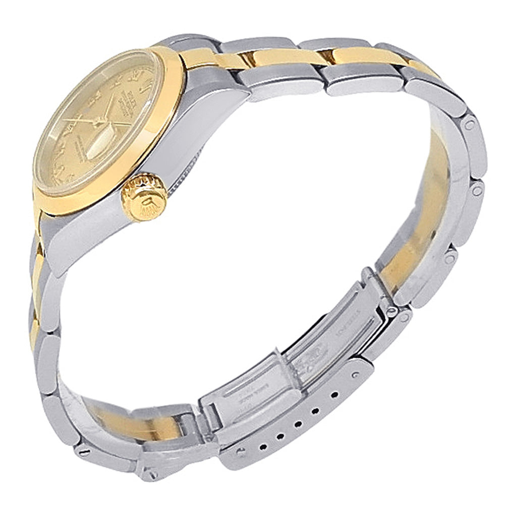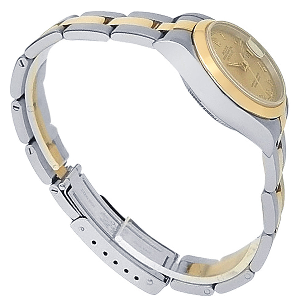 Pre-Owned Watch. Rolex Datejust ladies watch circa 2003 with 18k Yellow Gold & Stainless Steel case and Oyster bracelet. Watch has a champagne dial with date feature. Watch runs on automatic movement. Watch can fit up to a size 6½ inch wrist. Watch has signs of wear (hairline scratches). Watch does come with box and papers.